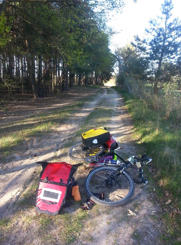 Throughout the rest of the day I cycle through pine woods and notice that the soil is sandy rather than earthy. The light is beautiful and I find a place to camp whilst it is still light – I had discussed my need to set up camp in the dark and then get up early so i am not discovered with Piotr and Natalie and was determined not to do this on this evening.