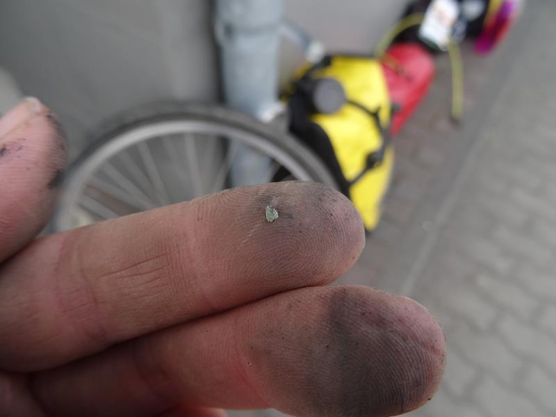 My joyful elation with the day is short lived when I reach Beeskow. I realise that my front right pannier has broken so I head to the local cycle shop to see about repairs or replacement. My german stands up – along with pointing – and I am told there are no replacements but that the next town should have some low riders. In the mean time I securely tape the offending rack and continue on my way satisfied the rack is ok for the moment … how wrong can a person be.