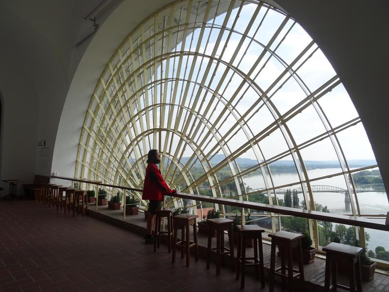The roads have become noticeably worse in Hungary and the following day was no exception. After a couple of hours cycling I meet up with a German cyclist, Karl, who is on a 2 or 3 month tour of Germany, Hungary and wherever else he fancies. We ride together for the day and having company for a change is great because I take it more leisurely and when the opportunity to go sight seeing in Esztergom arises, well the Basilica was impossible to miss and so impressive in the hot rocky landscape, that we decide to take time out and go up and visit. The whole building is incredible and the dome is amazing and has the most fantastic echo I have ever heard along with an awesome view of the landscape from the outside walkway … Lots of steps and totally worth it for the incredible 360° views!